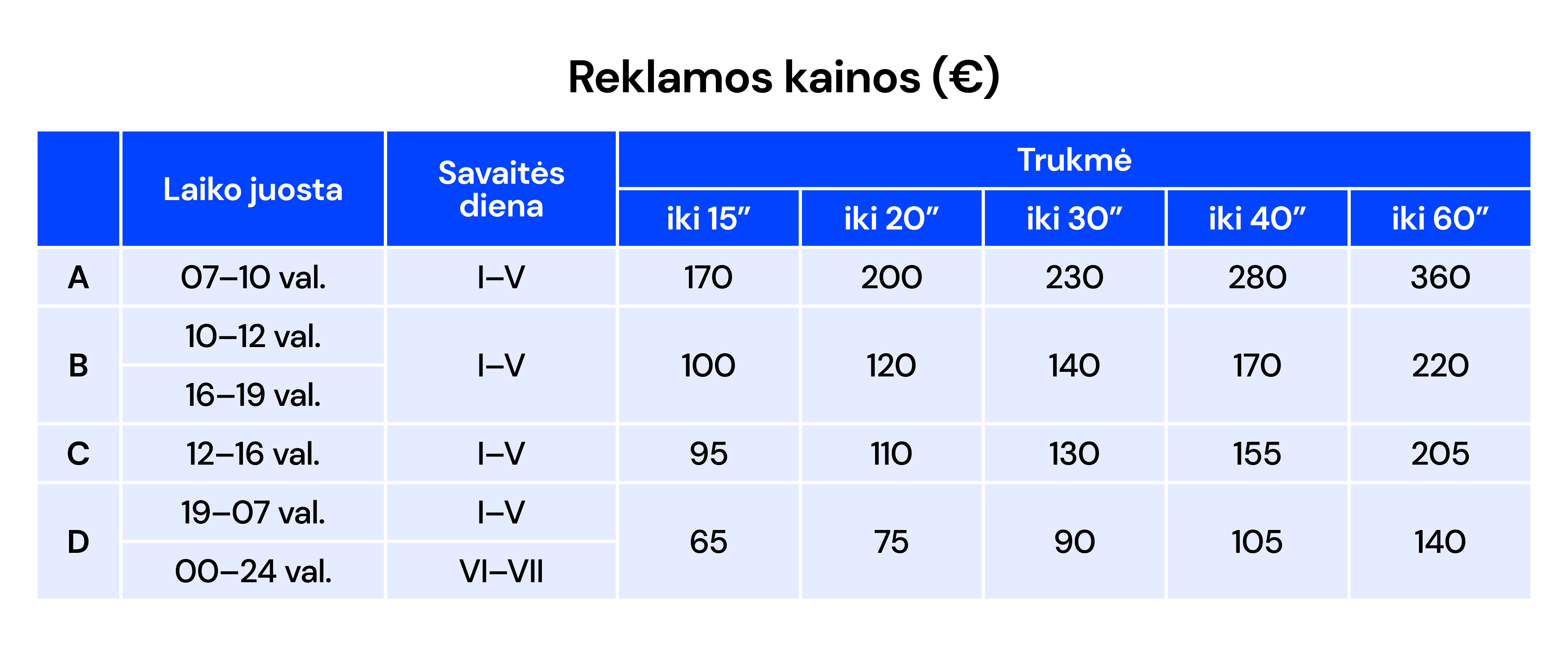 Dėl išsamesnės informacijos ir apimčių nuolaidų prašome kreiptis tel. Vilniuje (+370 5) 2 360 360 ar el. paštu: reklama@m-1.fm