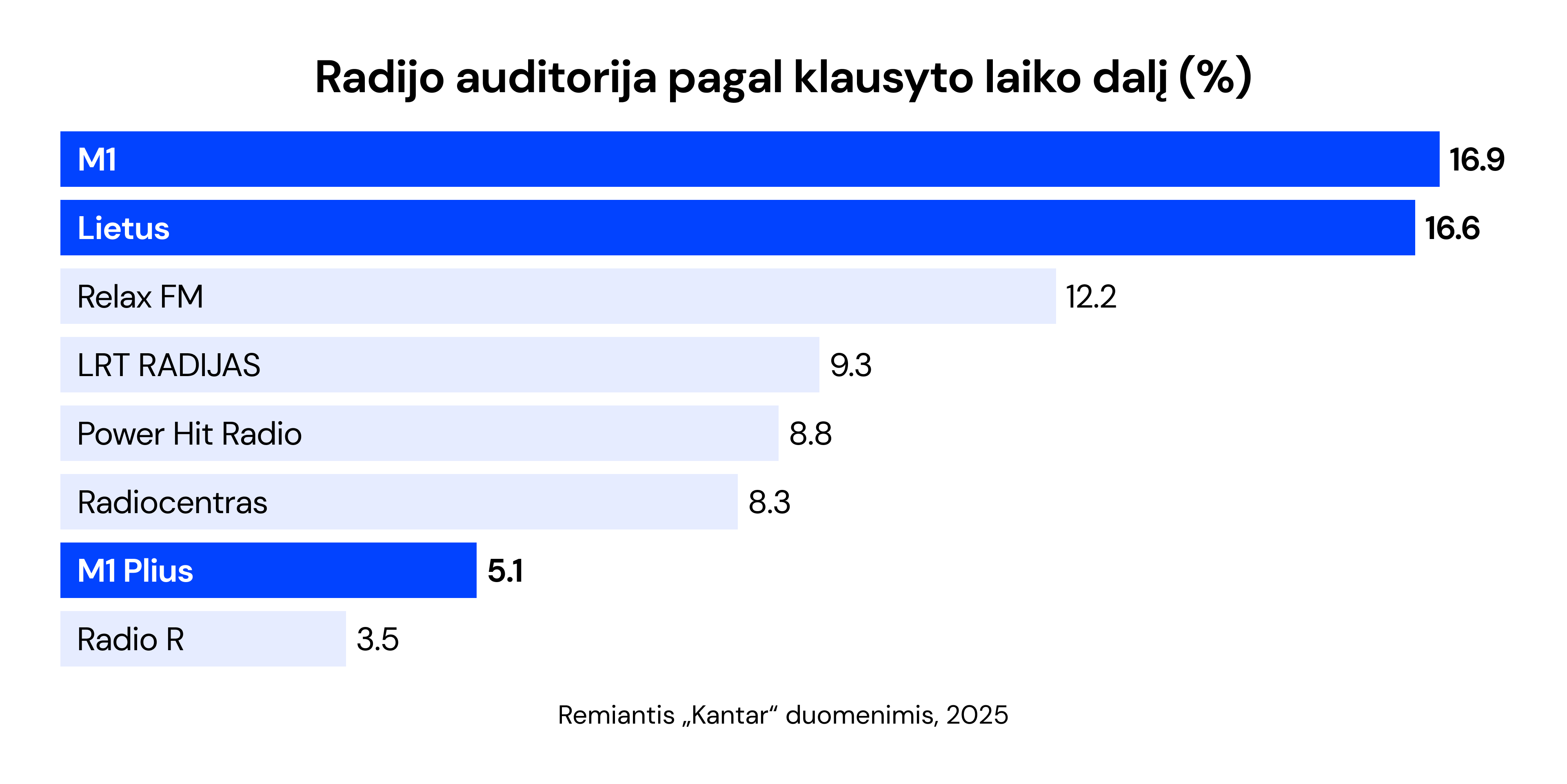 „Pirmasis muzikinis kanalas“ – taip tiksliai šifruojamas radijo stoties M1 pavadinimas. 1989-aisiais sugalvotas prekinis ženklas ir įgyvendinta laisvo, kūrybingo, novatoriško radijo idėja užkodavo lyderio geną. Tik labai drąsūs ir ambicingi žmonės tada galėjo garsiai pasakyti, kad jau laikas „pravėdinti“ tamsų, draudimais ir stagnacija pritroškusį „kambarį“. Tiek istorijos. M1 niekada nemėgo rašyti memuarų. M1 tikslas – kurti ateitį! M1 tikslas – visada būti pirmiems!
