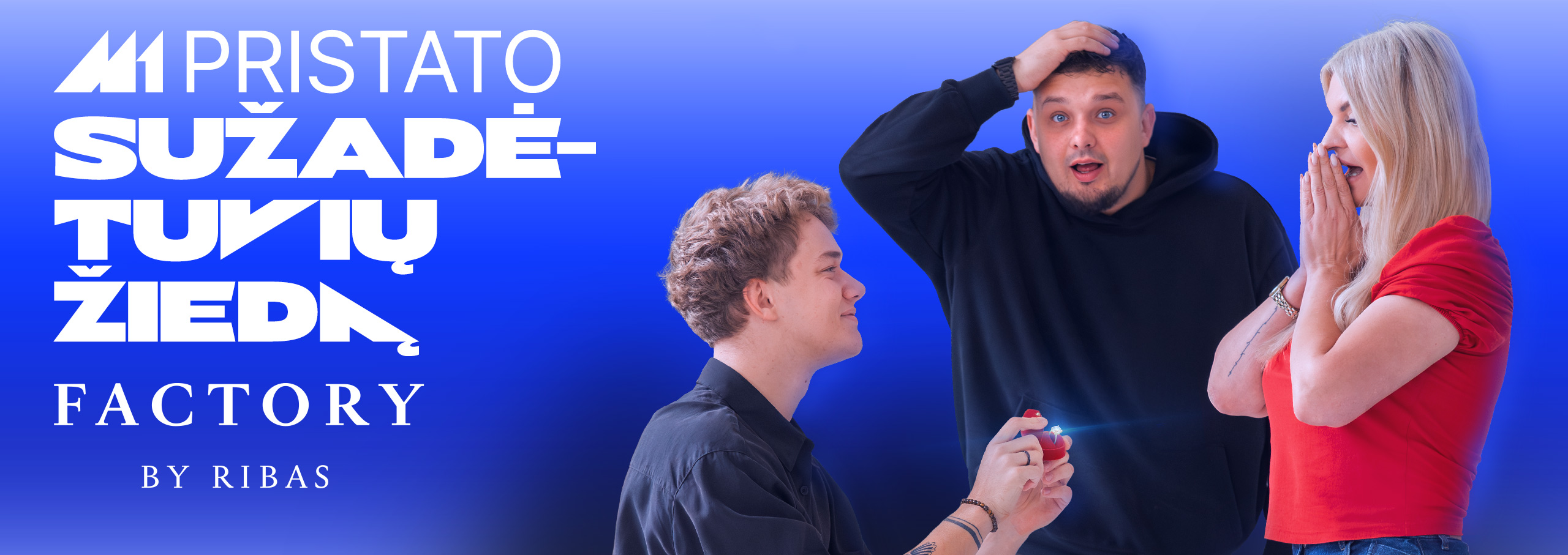Iš visų pakalbintųjų išrinksime vieną, kurio sužadėtuves padarysime nepamirštamas – į suplanuotą vietą atvyks M1 vedėjai-kurjeriai ir PRISTATYS „Factory By Ribas“ sužadėtuvių žiedą, o likusį darbą – PASIPIRŠIMĄ – teks padaryti pačiam. Arba pačiai, nes šiais laikais tai daro KAS NORI.